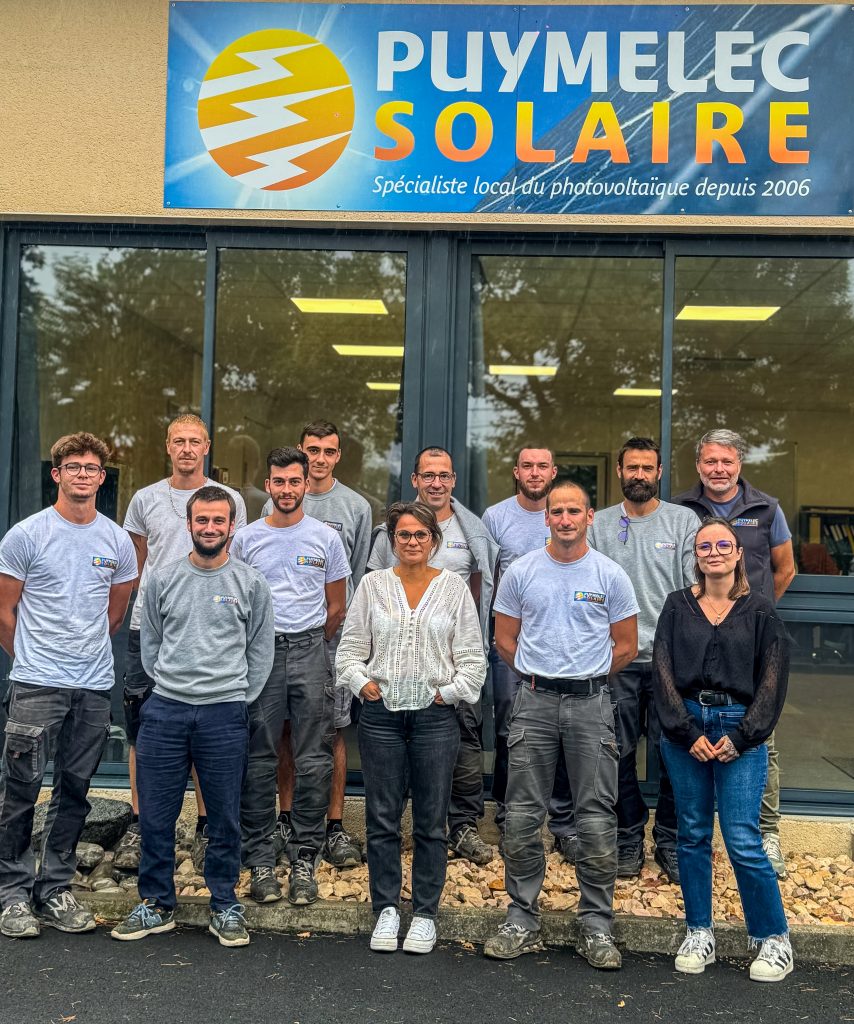 En 2021, Puymelec devient Puymelec Solaire. Son Président, Sébastien Soulhol, s’entoure de 11 salariés. Cette équipe a été constituée de façon à rassembler chacune des compétences indispensables au métier, couverture, électricité, administratif technique et bureau d’étude.